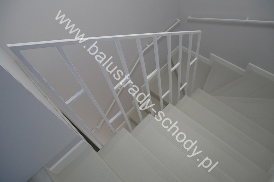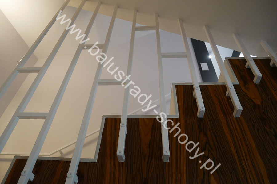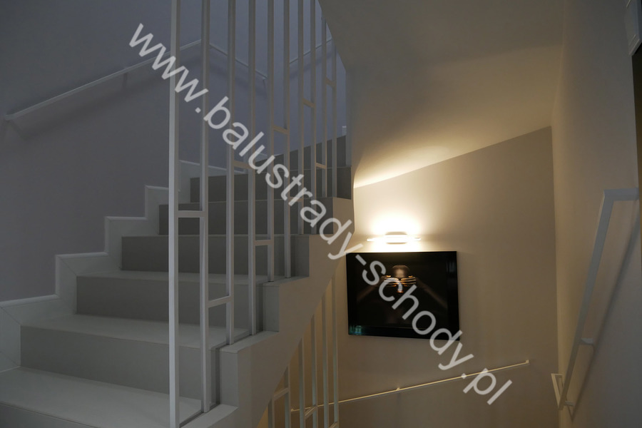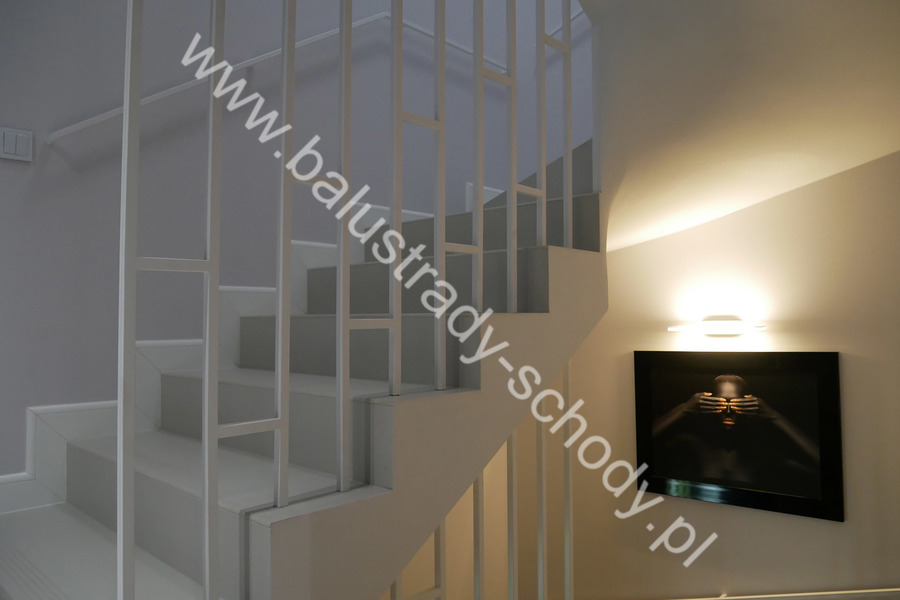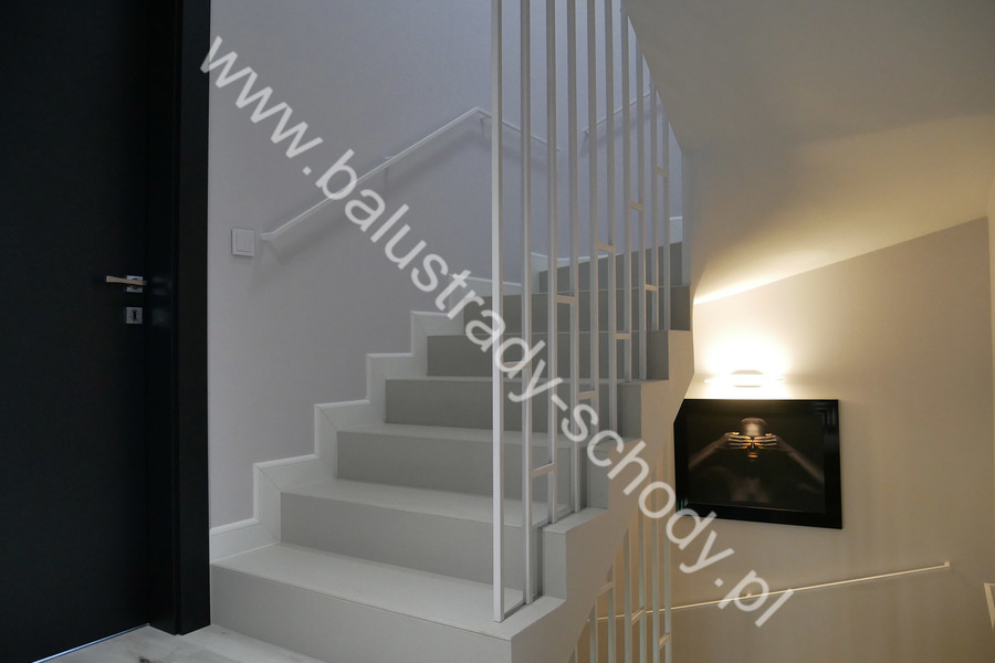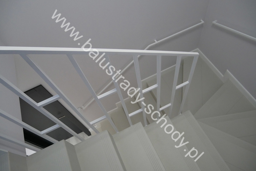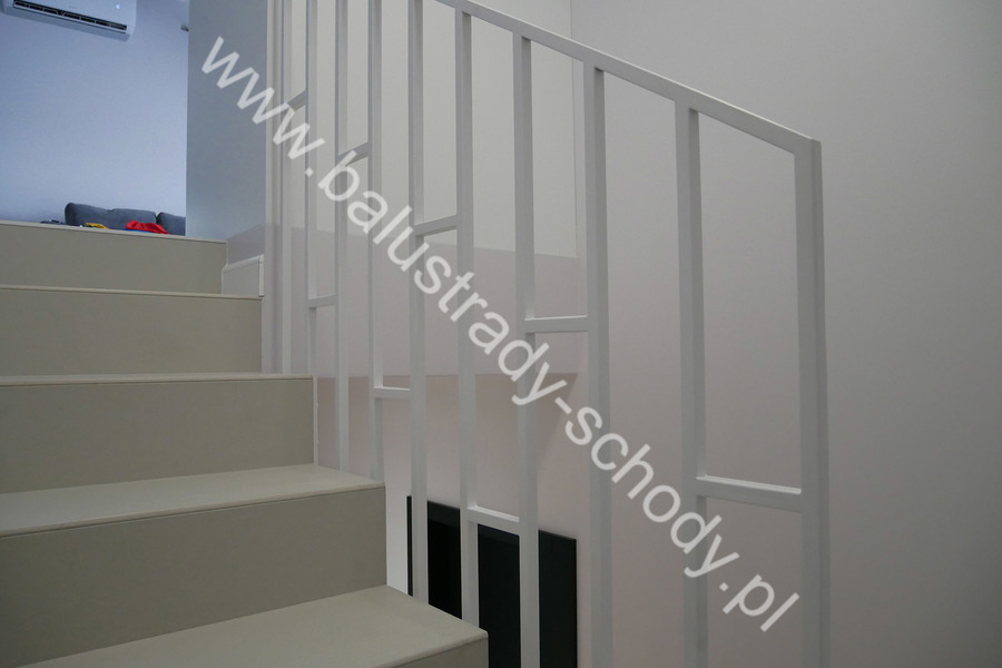 Nowoczesne balustrady wykonane ze stali klasycznej polakierowanej na biały RAL 9016 mat