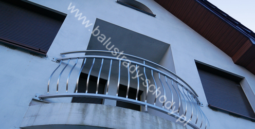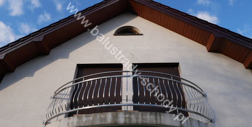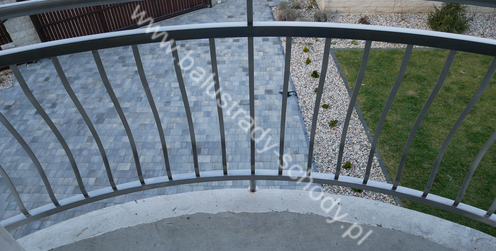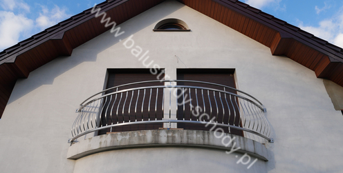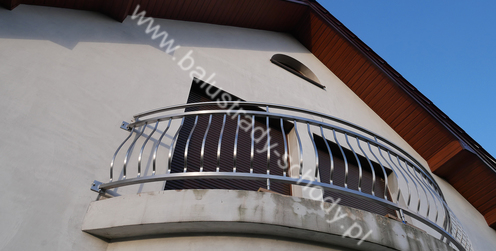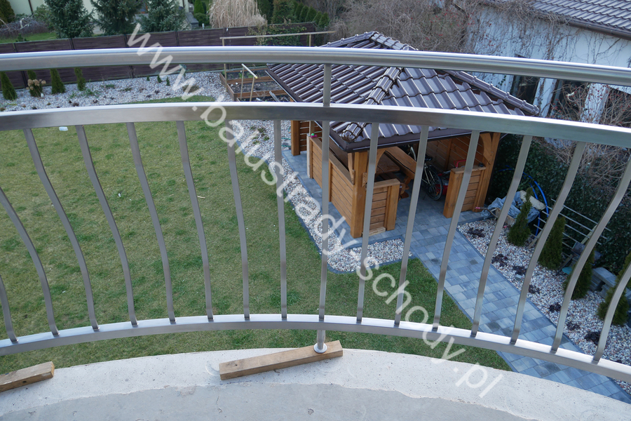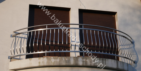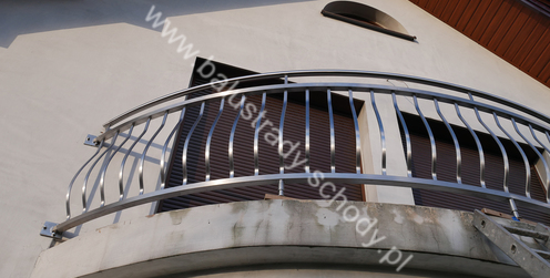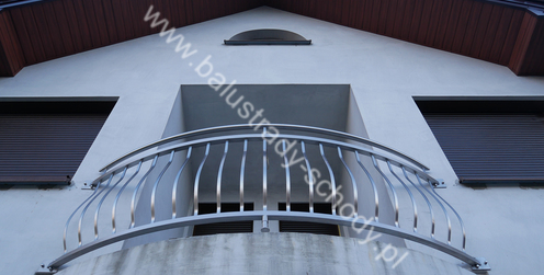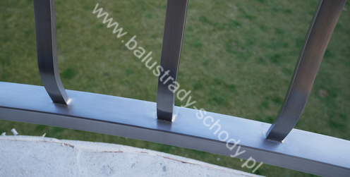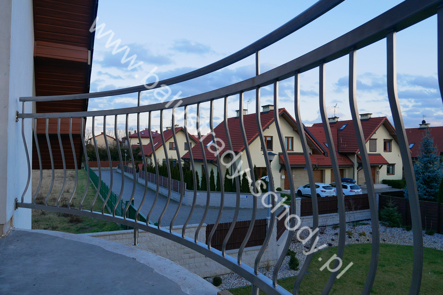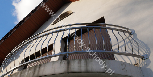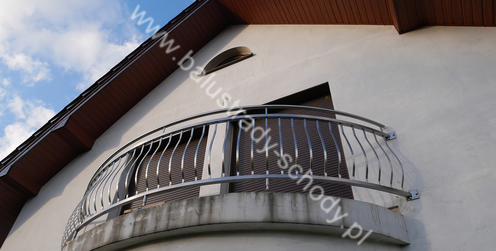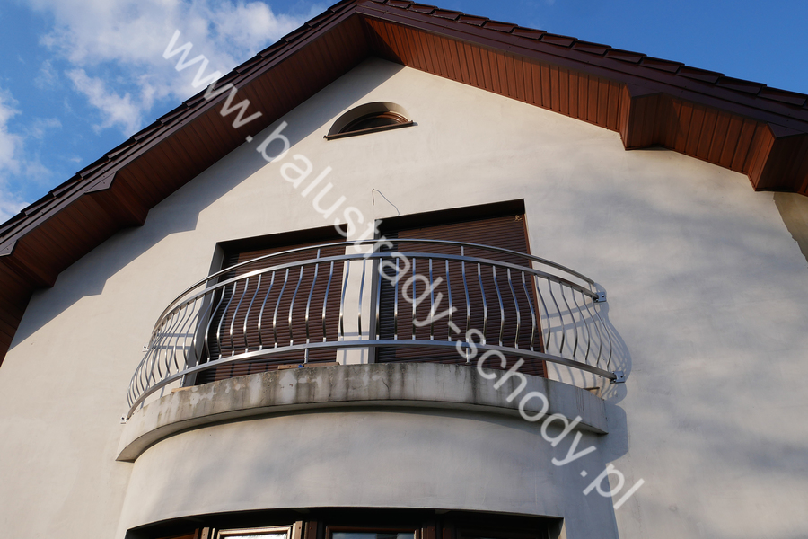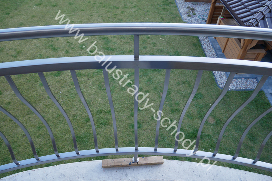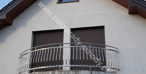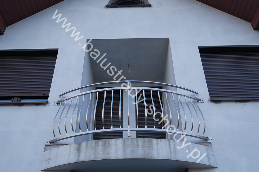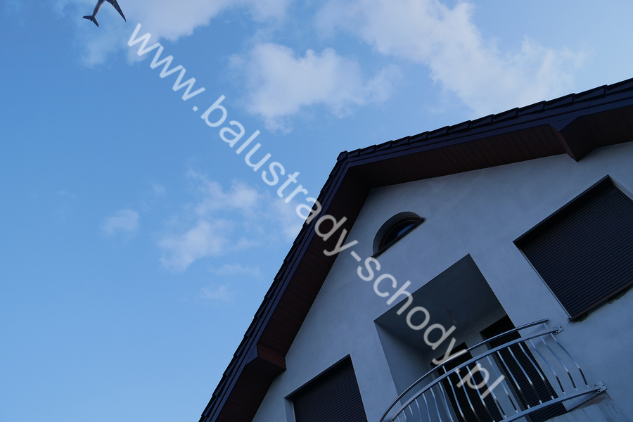 Balustrady zewnętrzne wykonane ze stali nierdzewnej w strukturze szlifowanej. Wypełnienie pionowe wykonane w oryginalny sposób w postaci tzw. brzuszków stworzonych z odpowiednio wymodelowanych przez nas płaskowników. Te rozwiązanie zapewnia ciekawy efekt wizualny szczególnie biorąc pod uwagę, że stal szlachetna doskonale odbija promienie słoneczne. W momencie spojrzenia na balustrady pojawia się więc nam obraz, który wygląda niespotykanie. Balustrada ta jest bez wątpienia ciekawym rozwiązaniem architektonicznym.