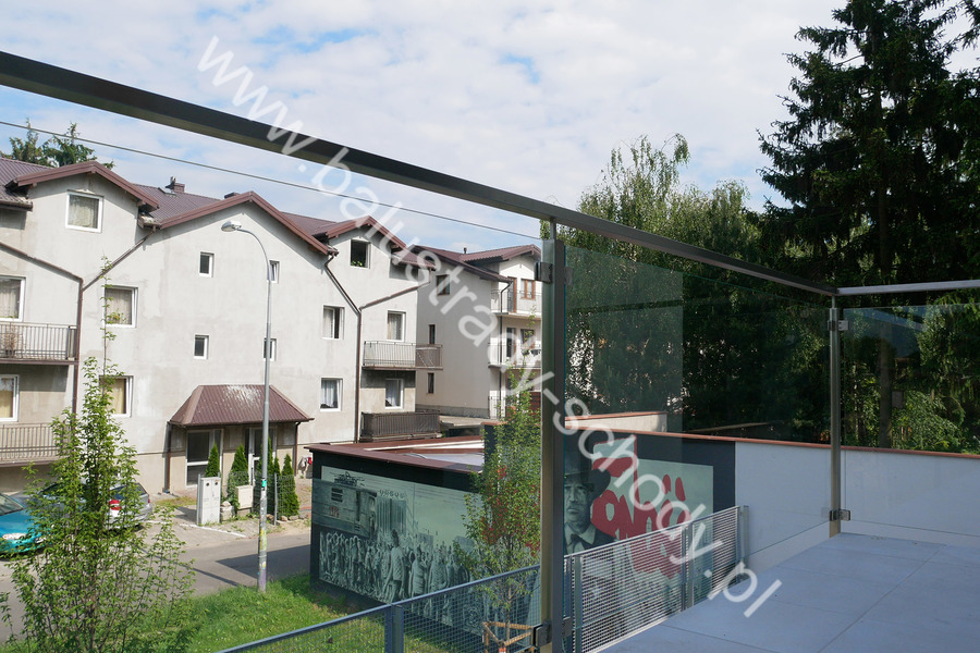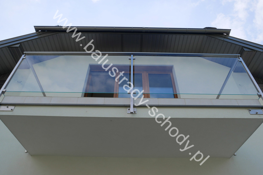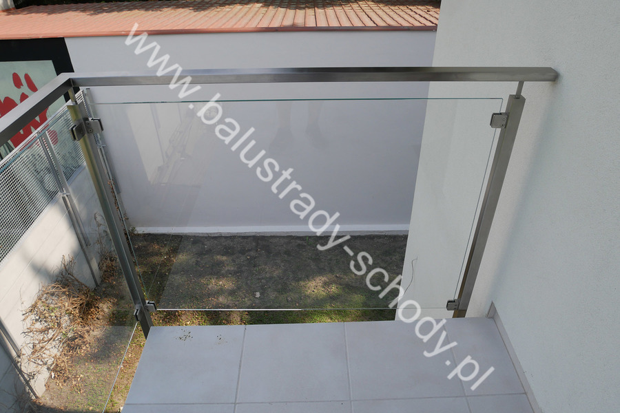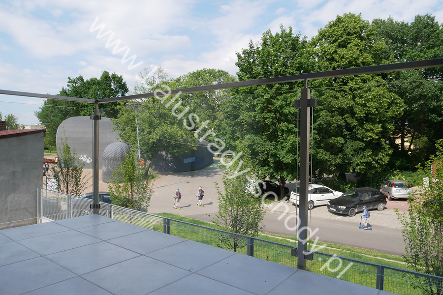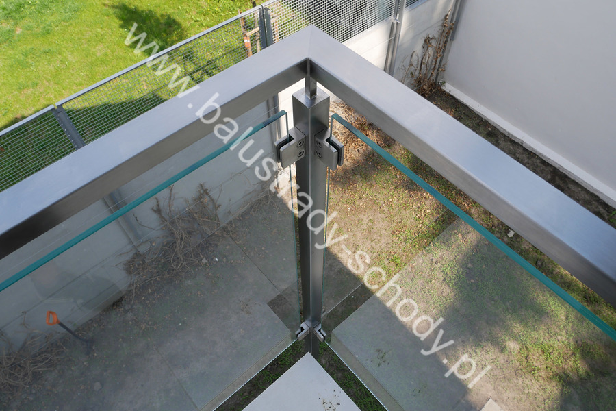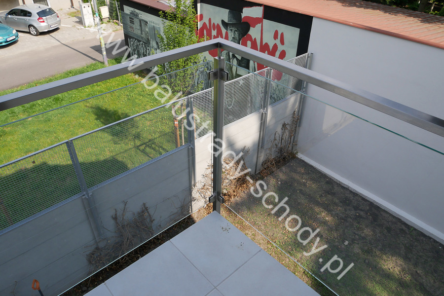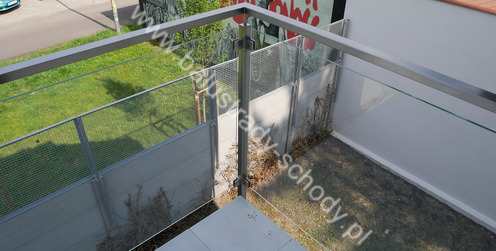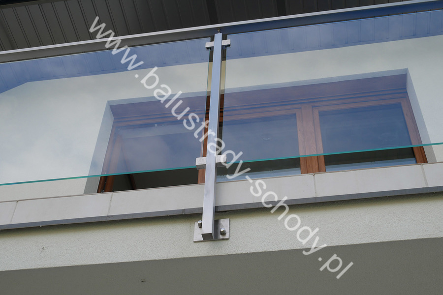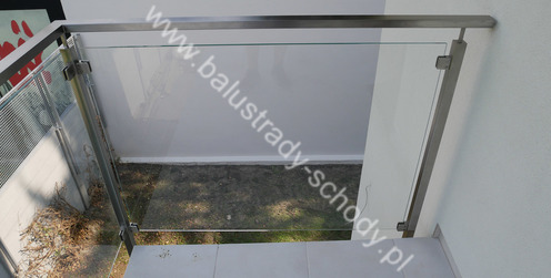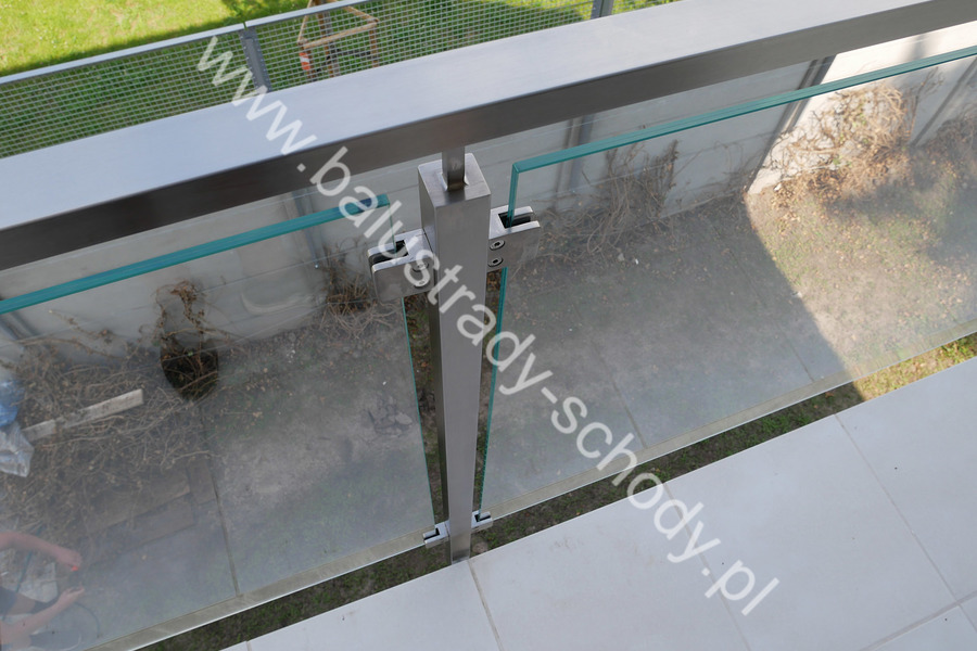 Balustrada szklana wykonana na nowoczesnej konstrukcji nierdzewnej szlifowanej.