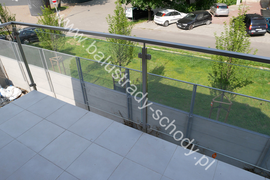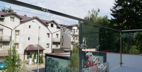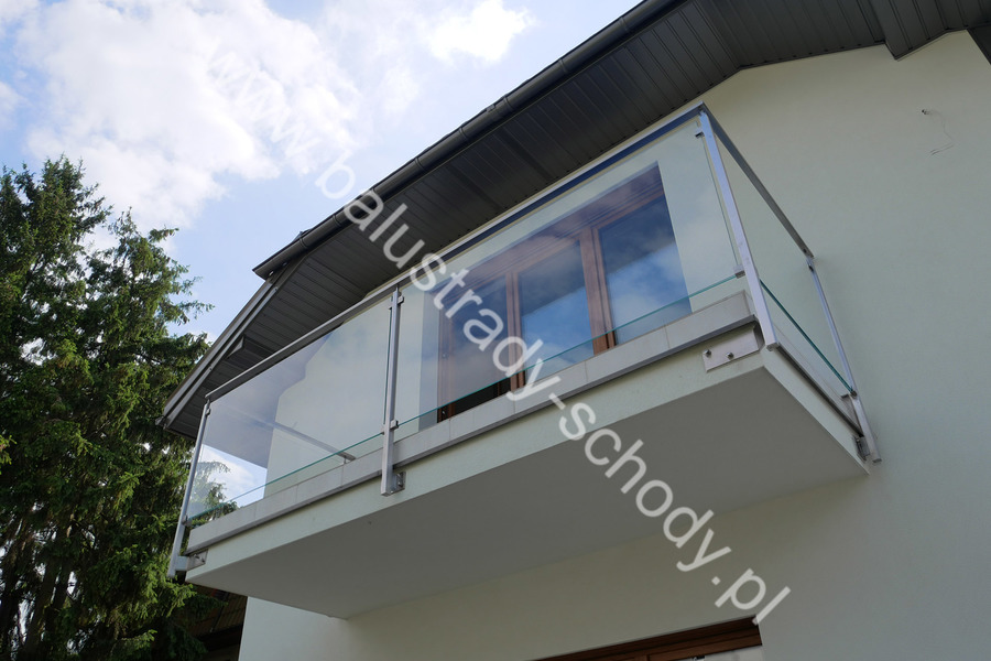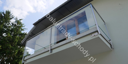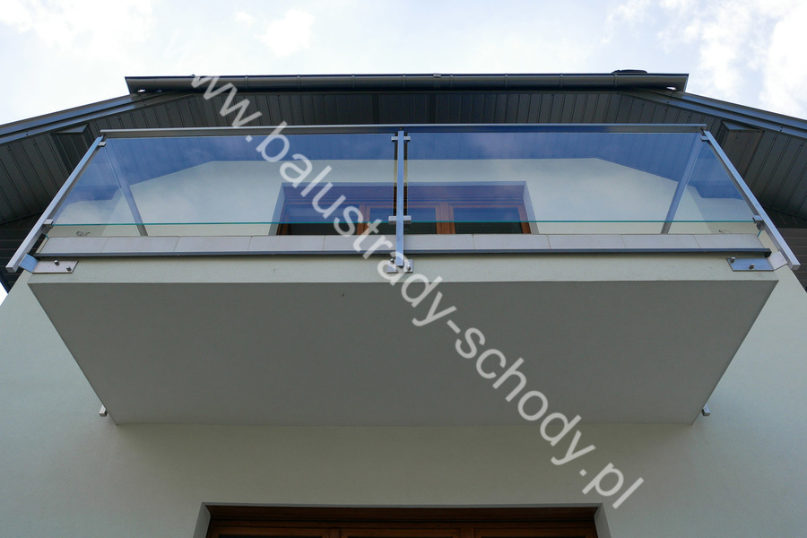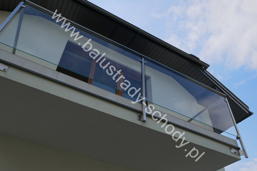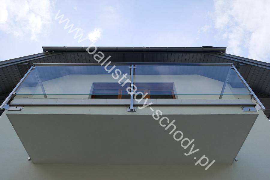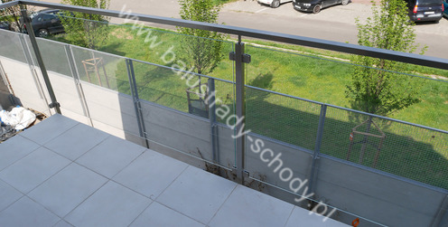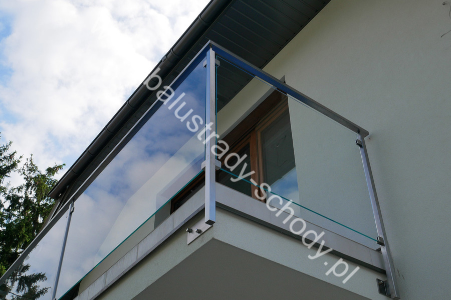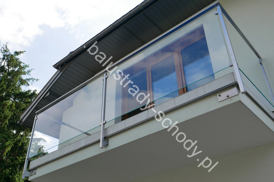 Balustrada szklana wykonana na nowoczesnej konstrukcji nierdzewnej szlifowanej.